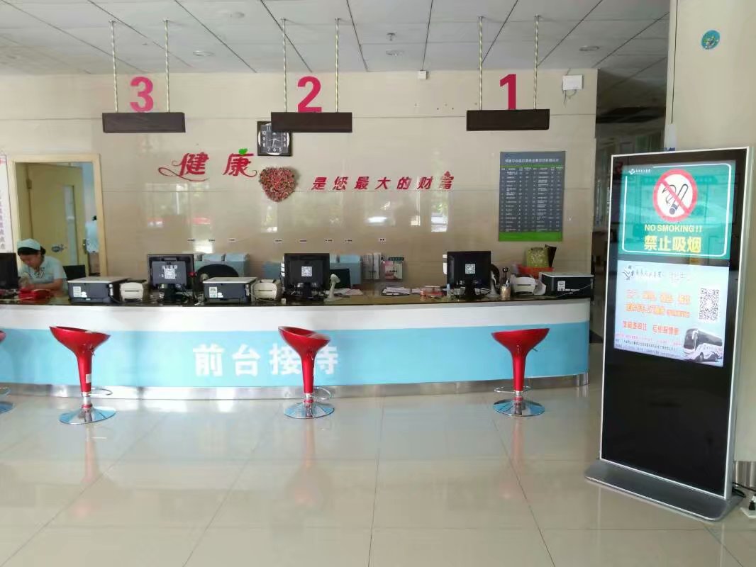 壁掛廣告機(jī),放于電梯口通道,人工咨詢前臺(tái),辦事等候區(qū),可以播放相關(guān)辦事指引流程,以及最新的疾病預(yù)防及治療。